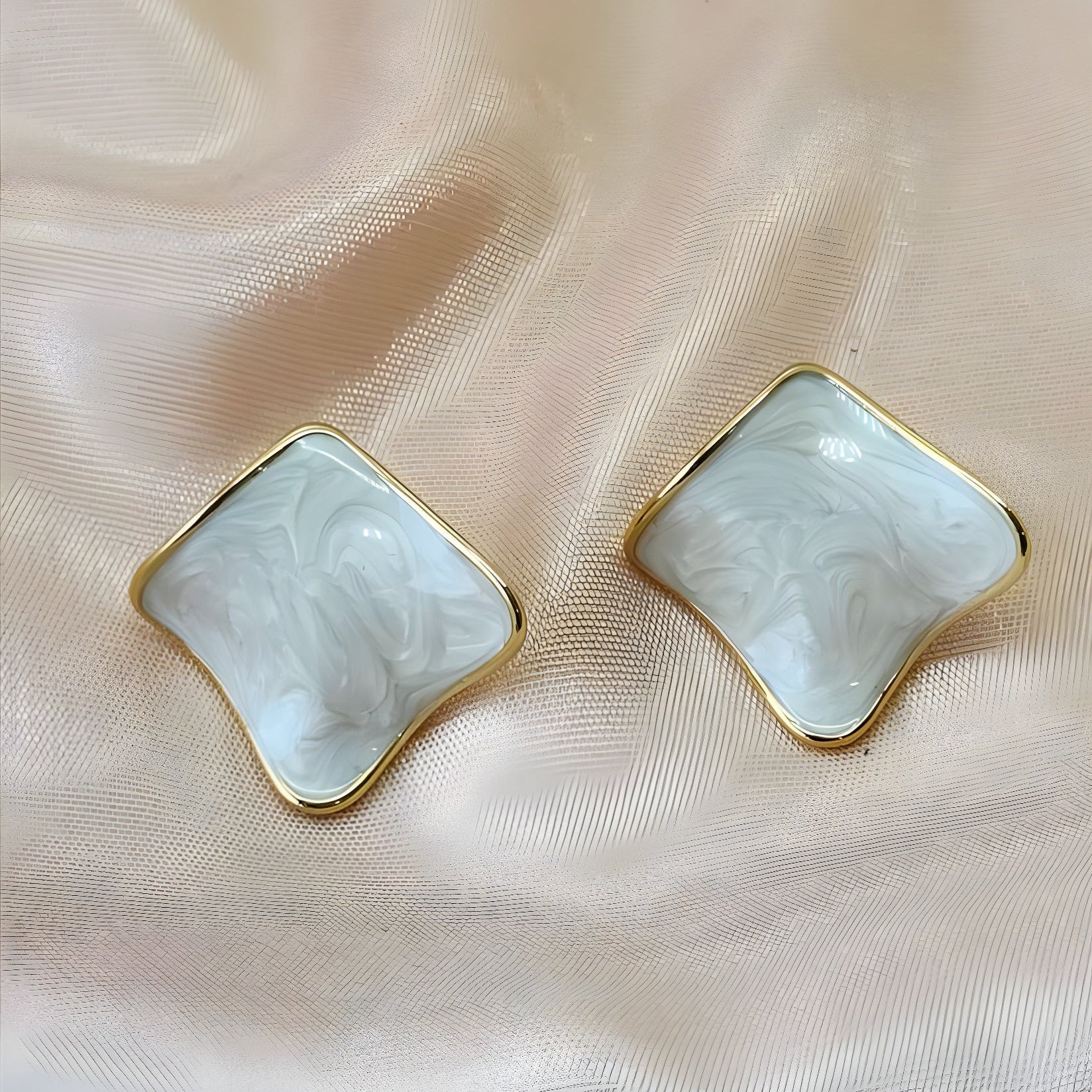 Elevate your everyday elegance with these marble-textured square stud earrings, framed in a sleek golden border. The glossy enamel surface gives a modern, luxurious feel, making them a perfect choice for women who love subtle charm with a sophisticated twist.
