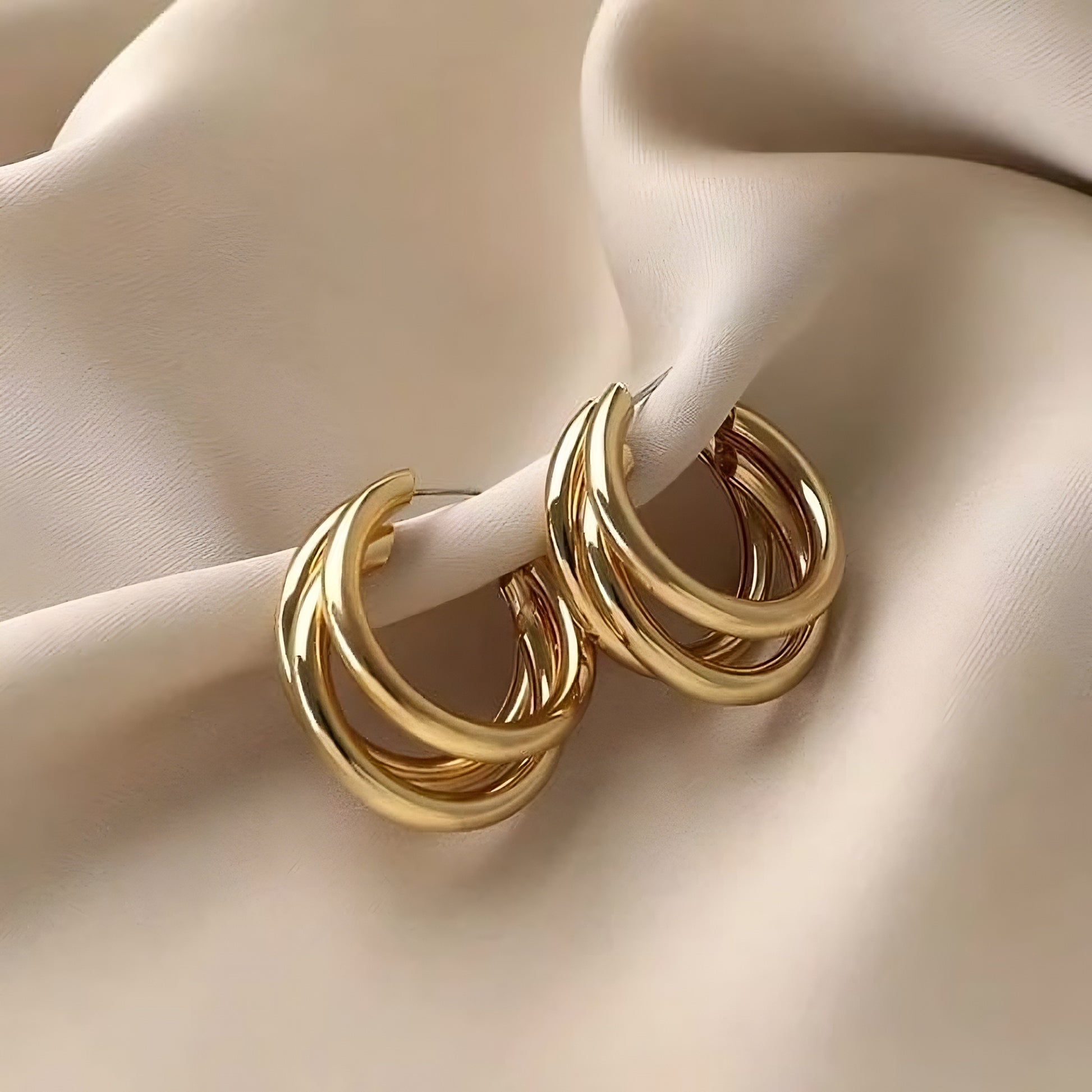 Make a bold statement with these Triple Layer Gold Hoop Earrings, where elegance meets modern edge. Featuring a sleek triple-hoop silhouette, these earrings offer a layered, dimensional look that instantly enhances any outfit. The rich, high-polish gold finish adds a luxurious touch, making them perfect for both everyday wear and special occasions.
